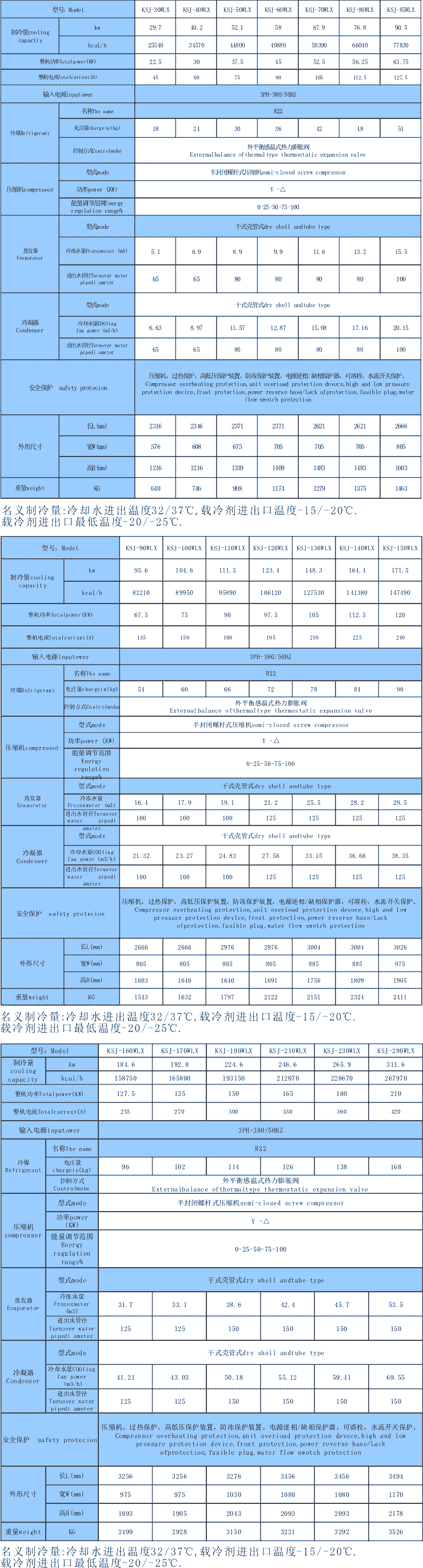 1.壓縮機(jī)采用優(yōu)美樂(lè)(箱式)漢鐘(螺桿式)等歐美日名廠進(jìn)口品牌全封閉全新原裝壓縮機(jī)及各國(guó)名廠控制部件和高效殼管式冷凝器、蒸發(fā)器組合,超強(qiáng)制冷、寧?kù)o省電,運(yùn)行可靠,效率高,噪音低。